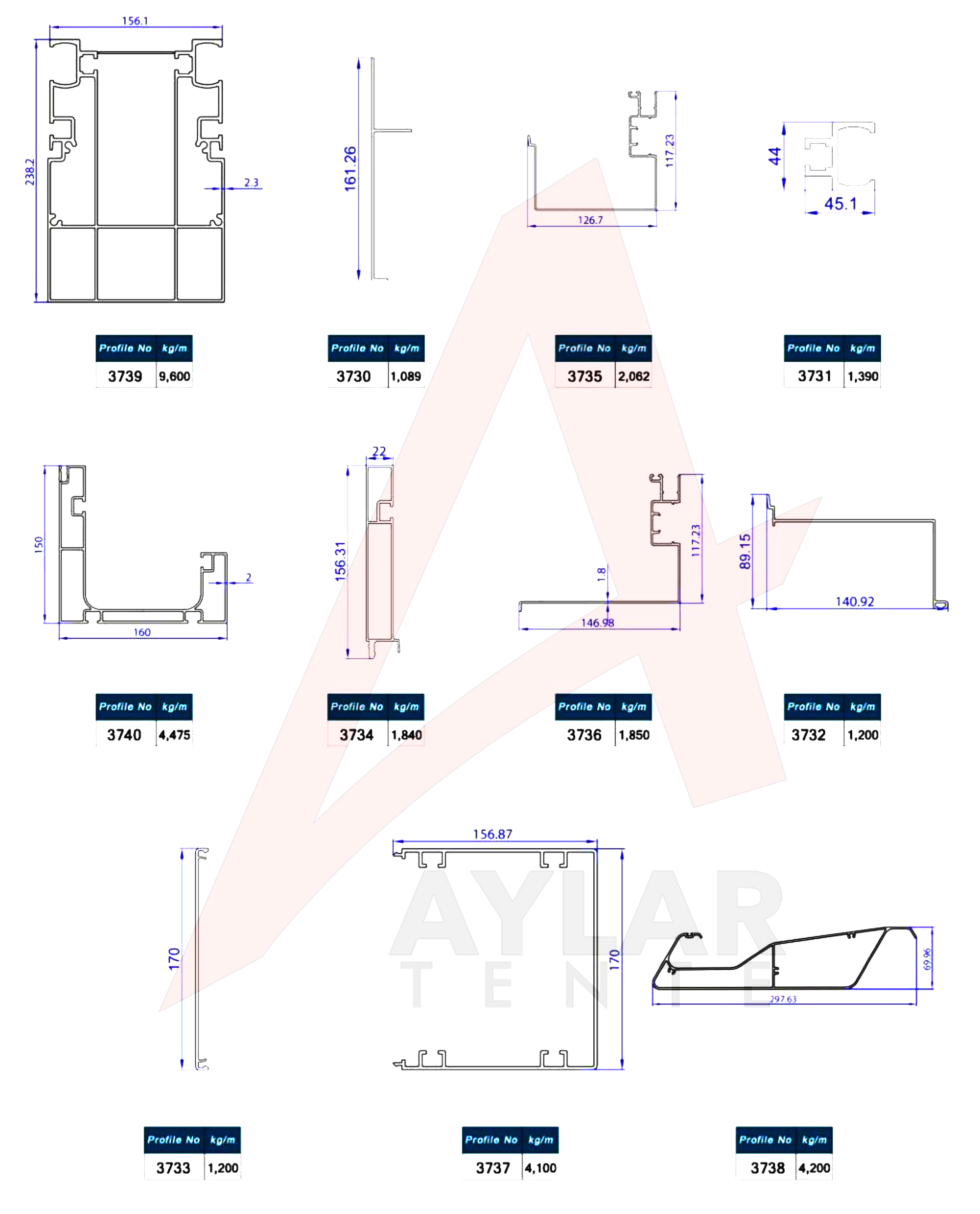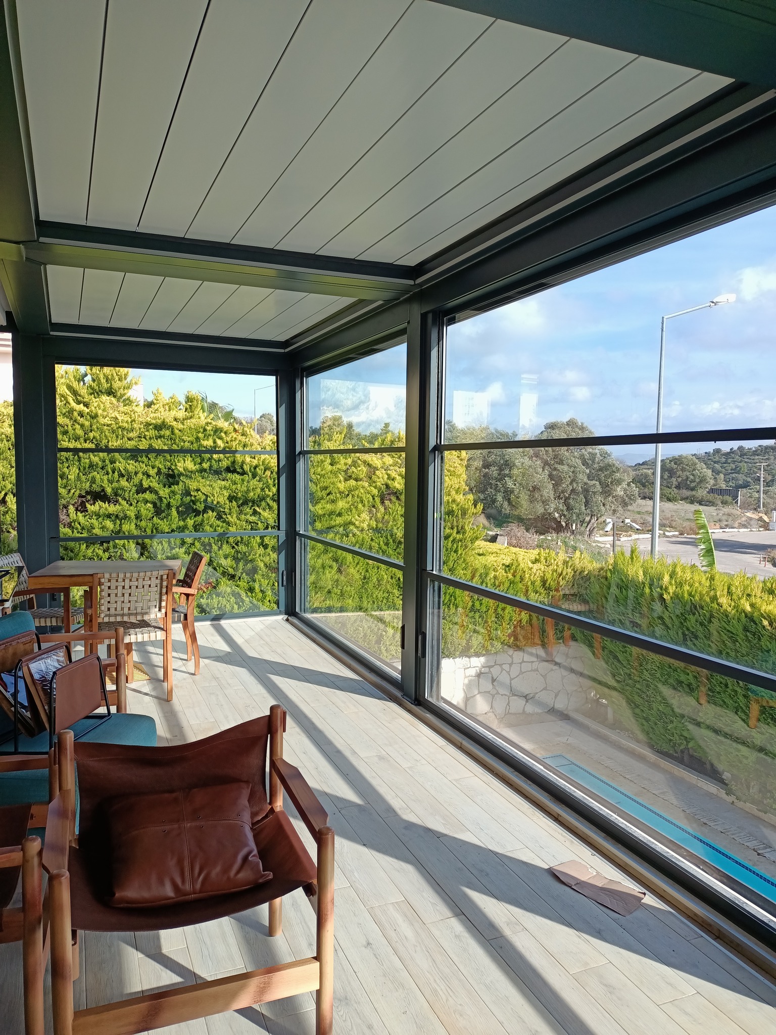 Sistemimizin maksimum ölçüleri 7000mm cephe X 5500mm açılım veya 4500mm cephe X 8000mm açılım şeklindedir.