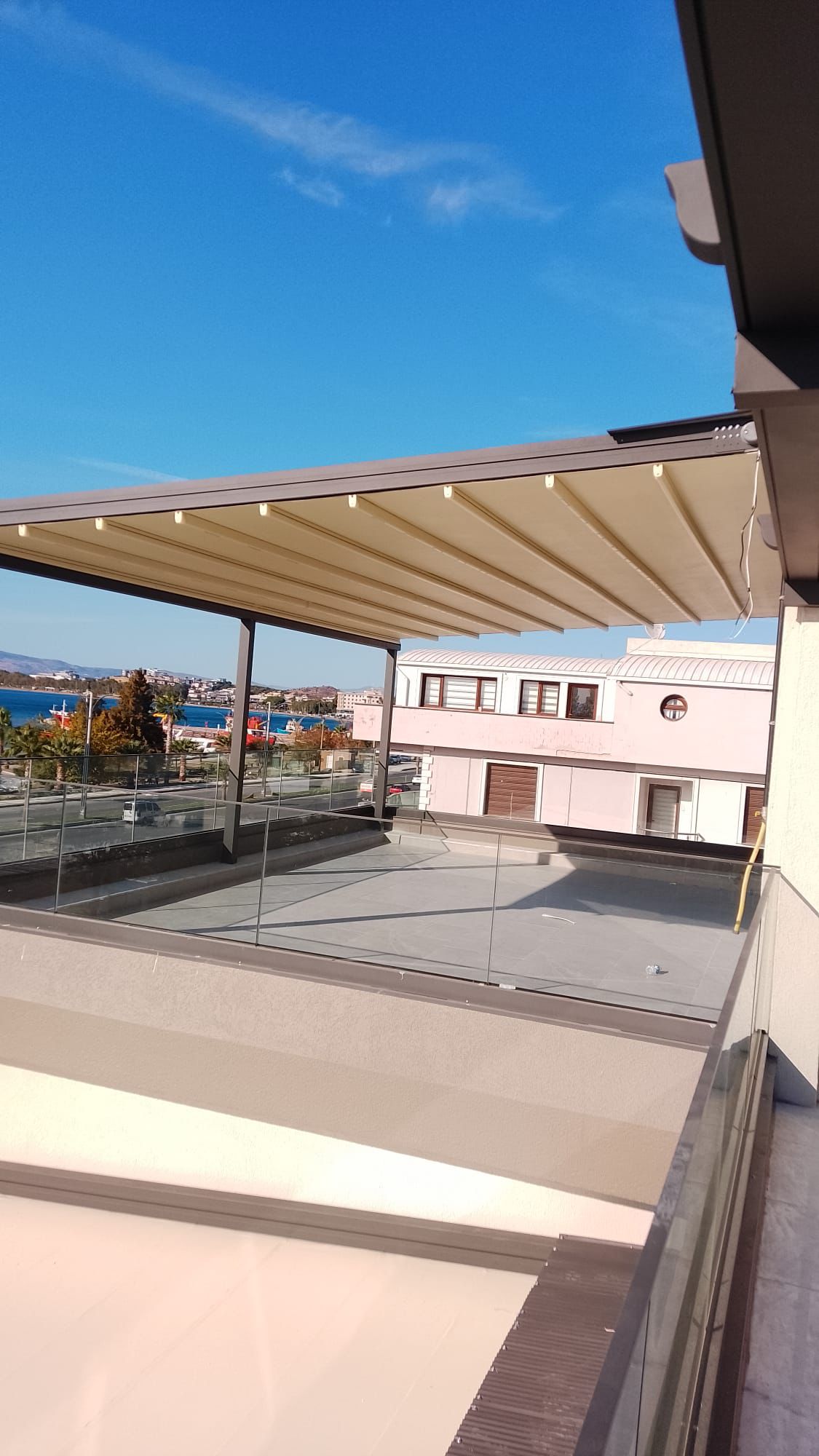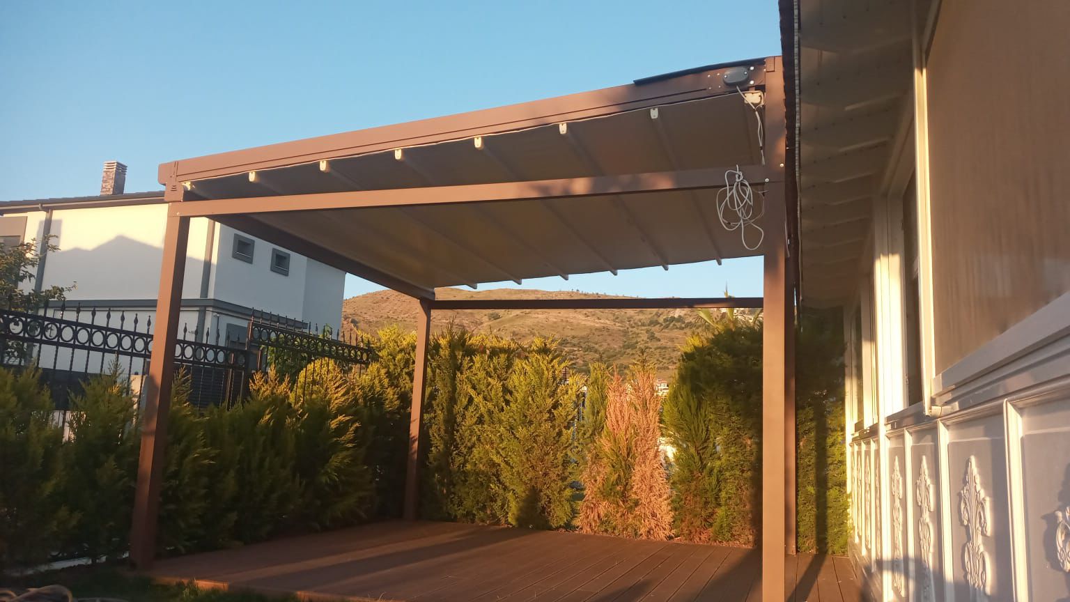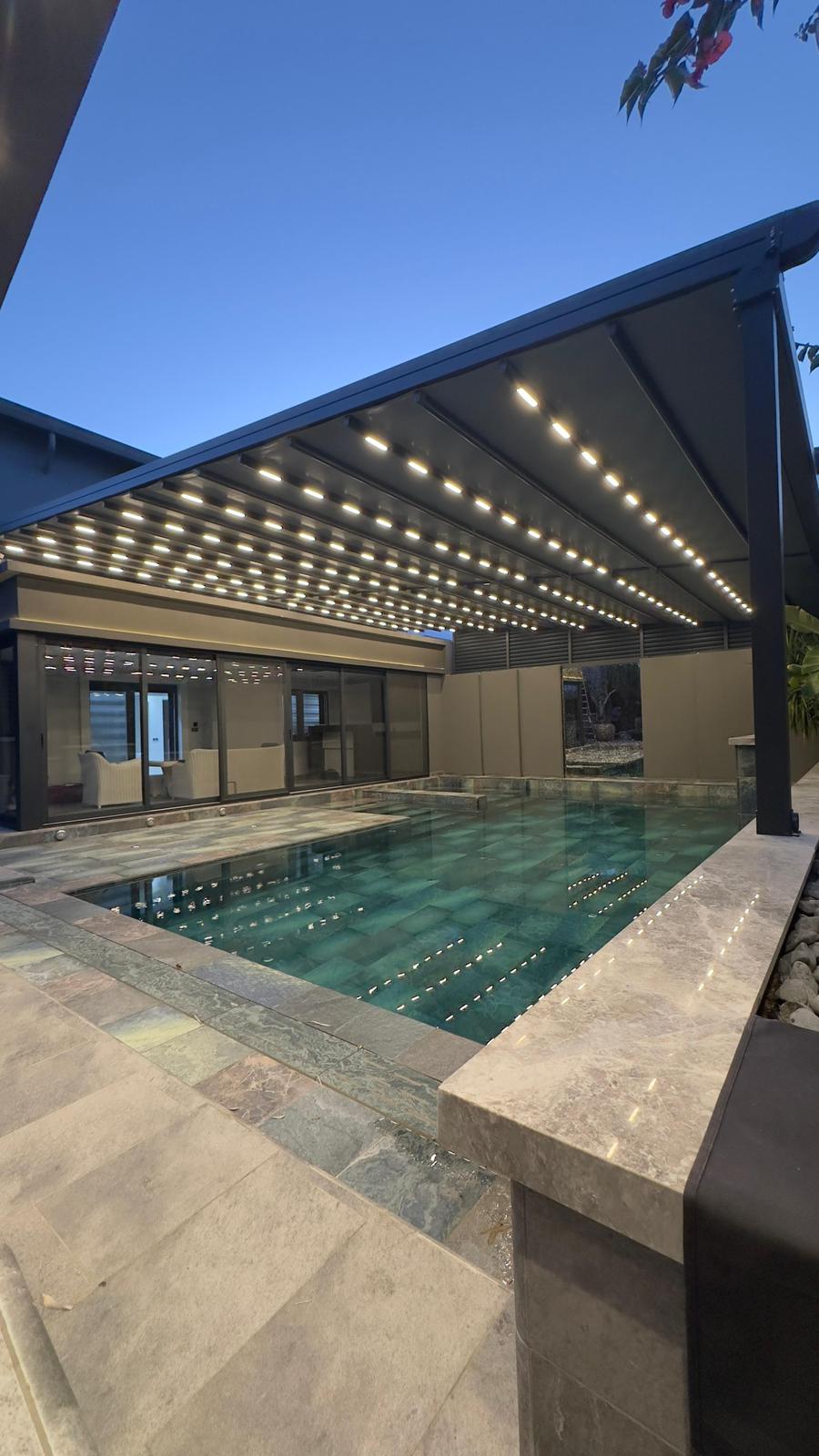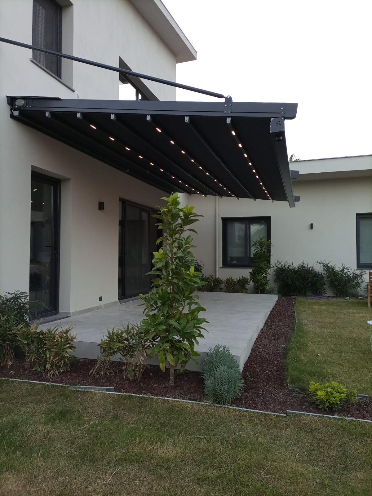 Ürünümüz, 1150 cm'ye kadar açılabildiği için tek parça çalışan sistemler arasında en yüksek kapatma alanı sağlayan gölgelendirme ürünleri arasında yer alır. Özel tasarımlı kalın rayları sayesinde yüksek dayanıklılık ve gücü temsil eder. Geniş veya dar tüm alanlarınız için tasarlandı. Ürünümüz, elektrostatik toz boya ile sınırsız renk seçeneği sunar ve 100x100 veya 110x145 mm taşıyıcı ön direkleri ile dekoratif ve şık görünüm sağlar. 70x150 – 90x150 veya 110x150 mm rayları sayesinde güçlü bir yapıya sahiptir. Uzaktan kumandalı sistemi sayesinde tek tuşla açıp kapatılabilir ve su geçirmez PVC blockout yüzey malzemesi ile dört mevsim kullanıma uygun hale getirilmiştir. Ürünümüz frekans makinasında işlenen blockout sistemi ile sorunsuz bir imalat ve daha uzun kullanım ömrü sağlar. Bakım gerektirmeyen özel tasarım sistemine sahiptir ve opsiyonel olarak gömme LED aydınlatma sistemi de sunulmaktadır. Mevsim şartlarına yüksek dayanımlı olarak tasarlanmıştır. Elektrostatik toz boyalı veya çinko kaplı bağlantı ekipmanlarına sahiptir. Ürünlerimiz ISO 9001 ve CE sertifikalıdır ve uluslararası standartlarda üretilmiştir.